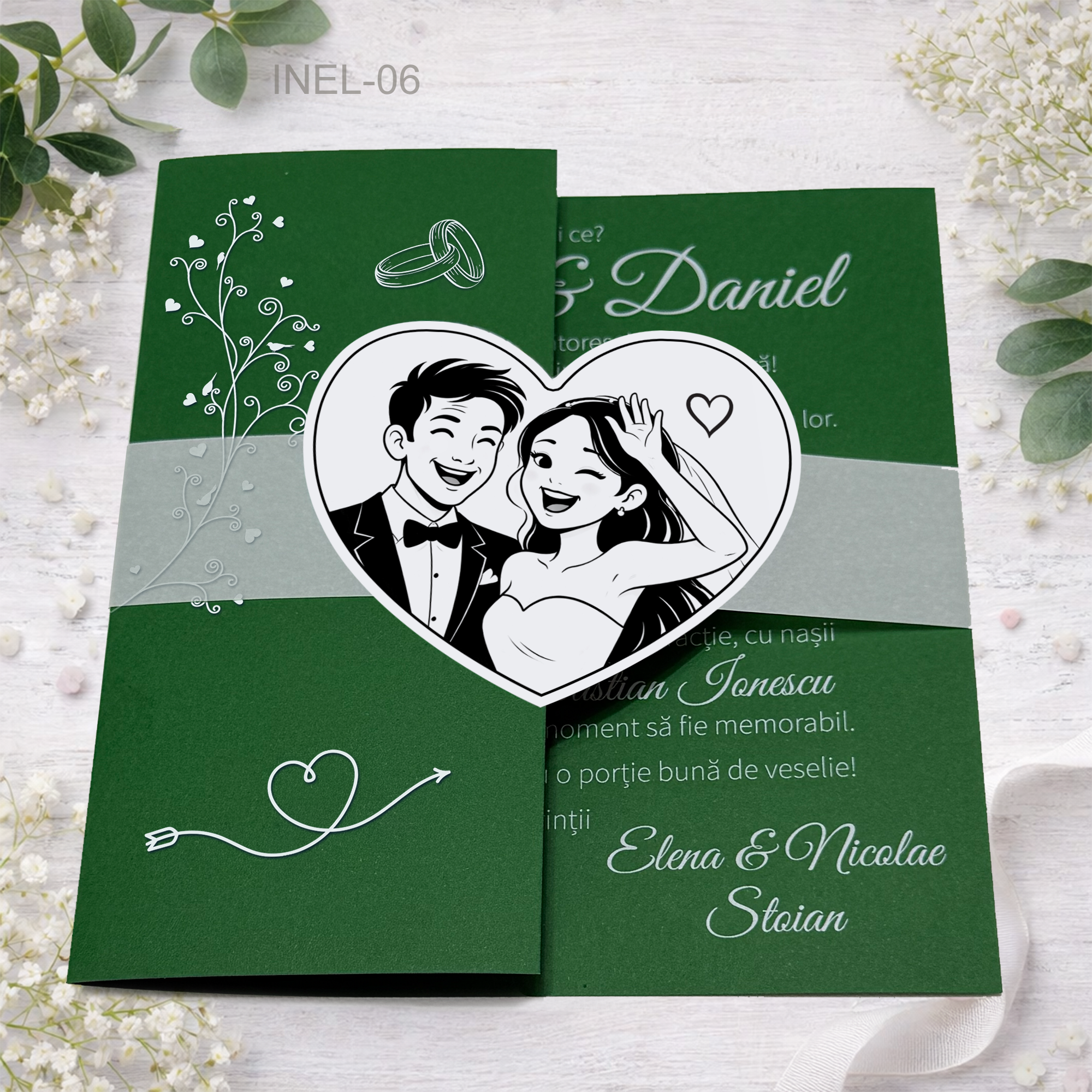 🌿 Propusă pentru cupluri care își doresc o invitație cu un impact vizual puternic, dar cu o eleganță discretă.
