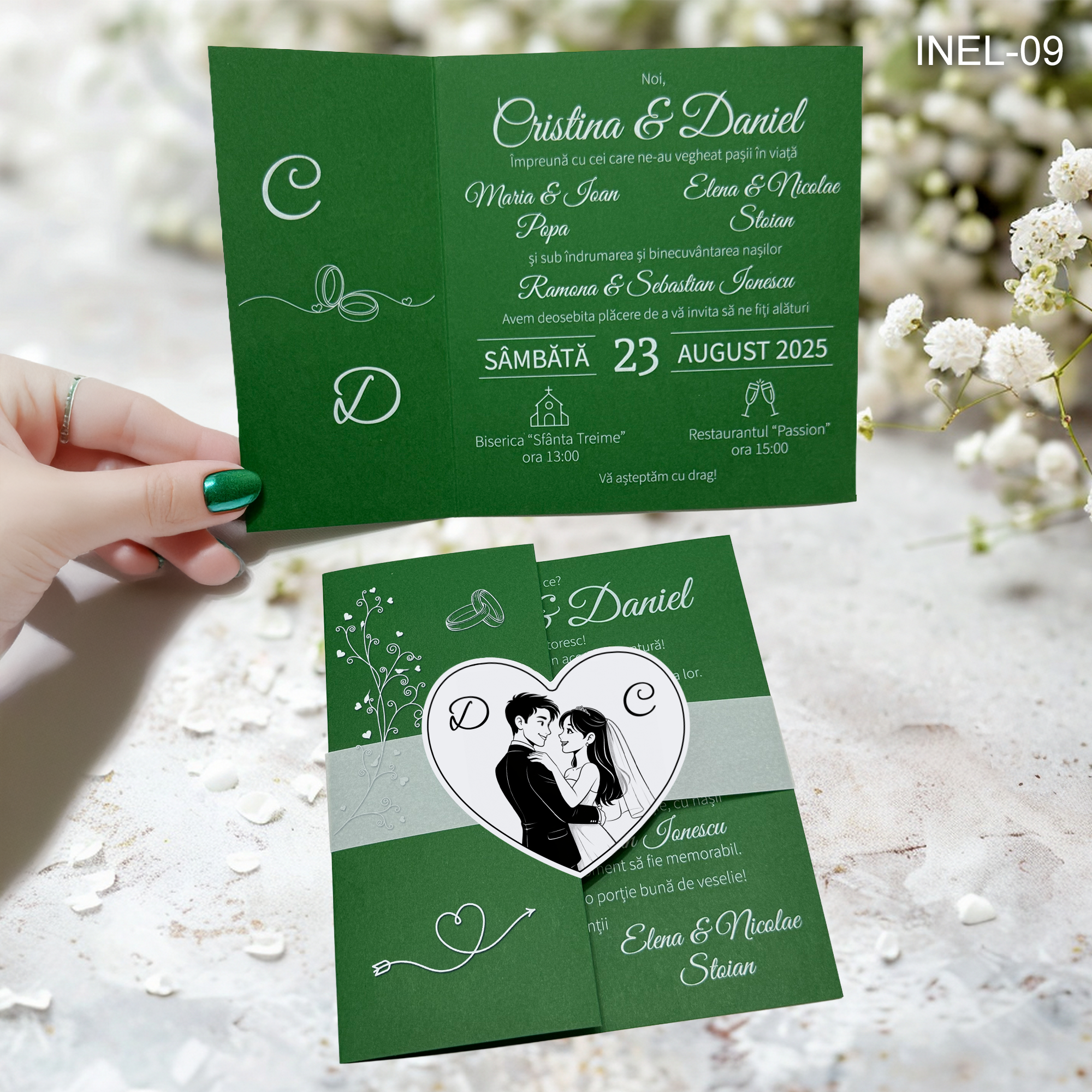 🌿 Propusă pentru cupluri care își doresc o invitație cu un impact vizual puternic, dar cu o eleganță discretă.
