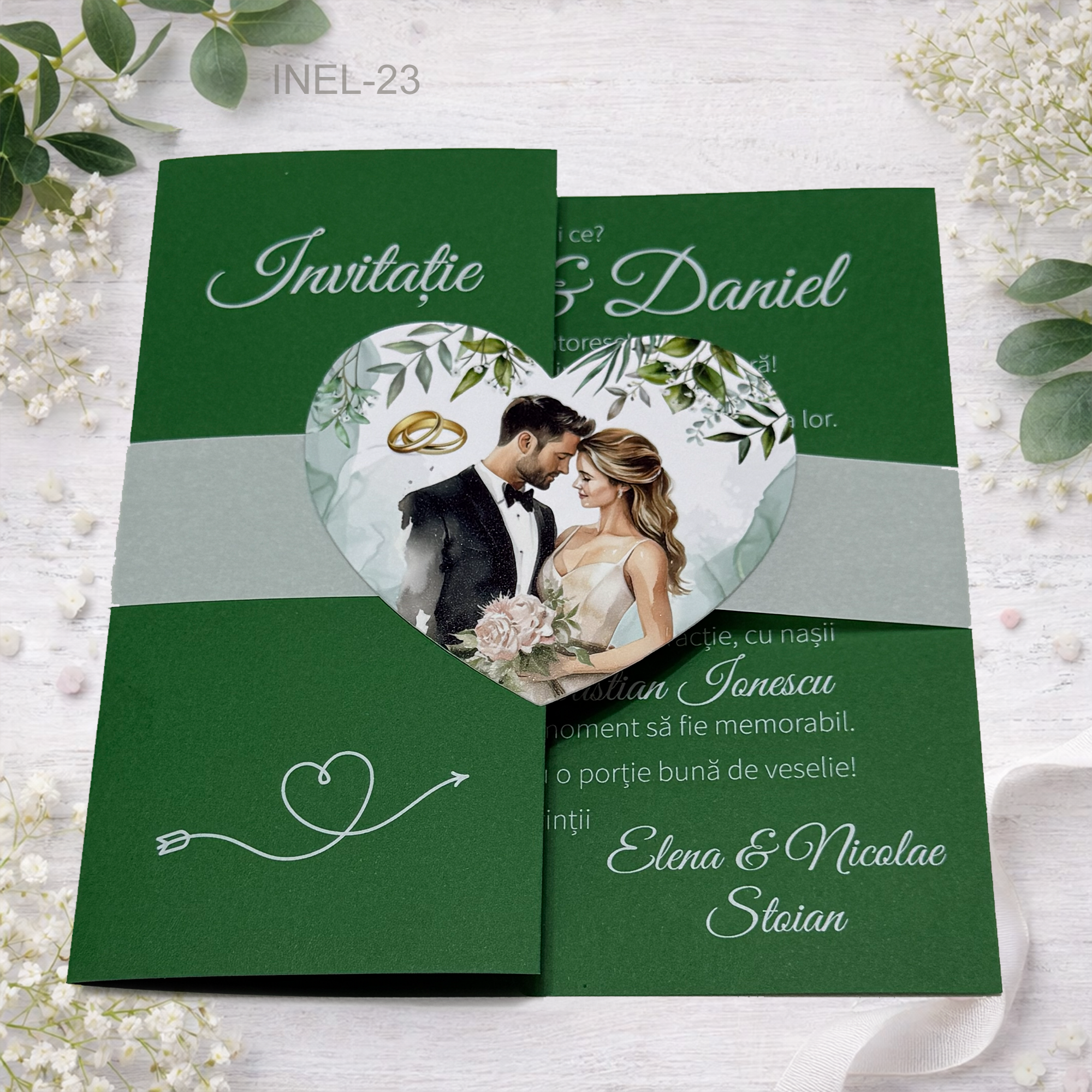 🌿 Propusă pentru cupluri care își doresc o invitație cu un impact vizual puternic, dar cu o eleganță discretă.